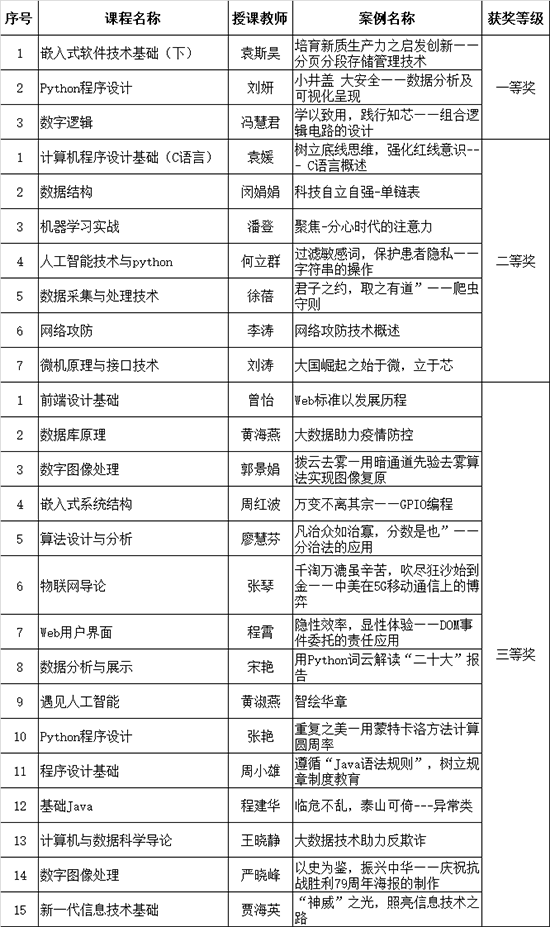 为贯彻落实教育部《高等学校课程思政建设指导纲要》(教高〔2020〕3号)和《beat365正版唯一官网必一深化课程思政建设与改革实施方案》(九院字〔2023〕122号),进一步推进我校课程思政工作,促进专业课程与思想政治理论课同向同行,强化课程育人导向,积极推进课程思政教学创新,beat365正版唯一官网必一在全院开展课程思政优秀教学案例评选活动,经过专家评审和意识形态审核,现将评选结果公示下: