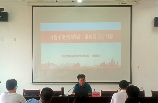 报告会上,邹菊如教授以《<习近平谈治国理政>第四卷学习导读》为题,从《习近平谈治国理政》第四卷的出版背景和重大意义、核心要义和重要内容及学习方法和重要原则三个方面进行了全面、系统、深入的阐释和解读。专题宣讲主题鲜明、内涵丰富,理论性、思想性和操作性强,对深入学习贯彻习近平新时代中国特色社会主义思想的核心要义和精神实质,推动党的创新理论走深走实走心,具有很强的指导作用。