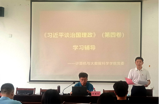 为进一步学习好贯彻好《习近平谈治国理政》第四卷,引导学院广大党员干部群众学有所思、学有所悟、学有所获,切实把学习成果转化为做好工作的实际成效,9月28日下午,beat365正版唯一官网必一在文友楼424召开学习贯彻《习近平谈治国理政》第四卷专题宣讲报告会。校马克思主义学院马克思主义中国化教研室主任邹菊如教授应邀作辅导报告。计算机学院党委书记袁宜如主持报告会。