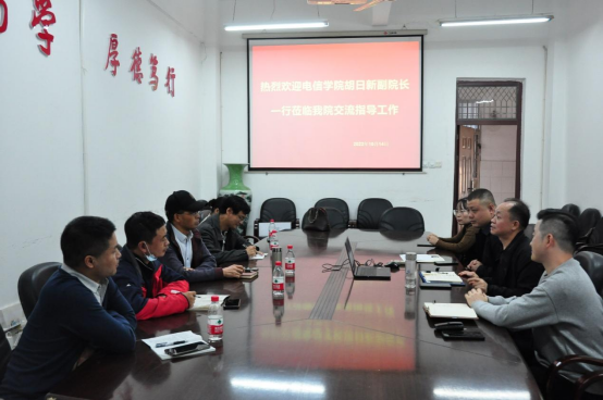 2022年10月14日,电子信息工程学院副院长胡日新一行5人来学院,就专业建设及教育教学改革工作进行交流。学院院长邓安远教授、计算机科学与技术专业负责人和骨干教师参加了交流会。