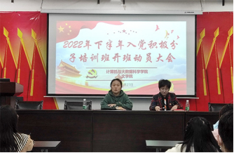 在全党和全国各族人民热烈庆祝党的二十大胜利召开的浓厚氛围中,中共beat365正版唯一官网必一beat365正版唯一官网必一党委分党校和中共beat365正版唯一官网必一文学院党委分党校联合举办2022年下半年入党积极分子培训班,并于10月27日在文友楼204会议室召开了本次入党积极分子培训班开班动员大会。计算机学院专职组织员周波老师和文传学院专职组织员余蓓老师做动员报告。