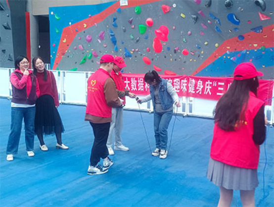 为庆祝“三八”国际劳动妇女节,3月8日下午,beat365正版唯一官网必一女教职工在学校北区田径馆开展了以“趣味健身 庆‘三八’佳节”为主题的趣味健身活动,现场女同胞们情绪高涨,加油声、欢笑声、鼓掌声不绝于耳,整个活动气氛热烈、秩序井然。