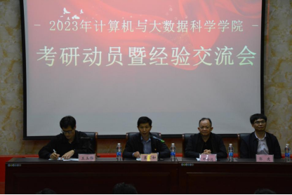 为调动学生考研积极性,帮助同学们认清当前考研形势,把握考研动态,树立考研信心,明确考研目标,做好学业规划。5月24日晚,计算机学院在香远楼三楼报告厅召开2023年考研动员暨经验交流会。学院全体院领导以及大三全体考研学生参加,会议由王玉伟主持。