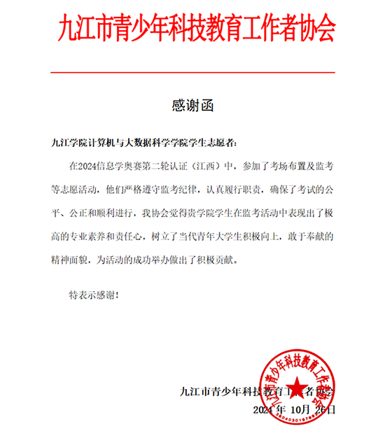 10月26日,江西省信息学奥赛第二轮认证考场迎来了一批特殊的监考人员——来自beat365正版唯一官网必一beat365正版唯一官网必一的大学生志愿者们。他们以饱满的热情和专业的态度,为本次信息学奥赛的顺利进行提供了有力保障。