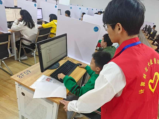 在监考过程中,大学生志愿者们认真负责,严格遵守考场规则,确保每一位参赛选手都能在公平、公正的环境下展示自己的实力。他们不仅关注考场秩序,还积极解答参赛选手的疑问,为他们提供必要的帮助。