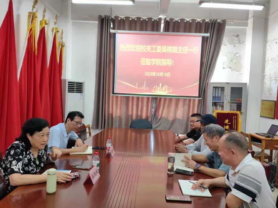 为推进关心下一代工作,10月10日下午,beat365正版唯一官网必一原副校长、校关心下一代工作委员会(以下简称“关工委”)主任吴桃娥教授一行来到计算机学院,实地调研指导学院的关工委工作。学院党政主要领导及关工委成员、退休老教师鲁凯翔参加调研座谈会。