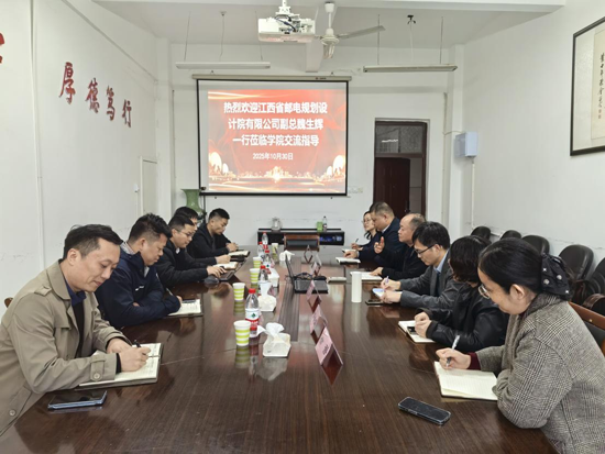 10月30日,江西邮电规划设计院有限公司副总经理魏生辉、集客部主任吴佳彦、软件研究院院长徐俊、九江分公司总经理付敏华、数字商务研究院院长范晓冬一行5人到访beat365正版唯一官网必一,进行调研交流,学院院长邓安远、副院长彭虎、副院长董西伟,办公室主任谭捷、数据科学与技术教研室主任郭景娟及骨干教师徐蓓参加座谈交流。