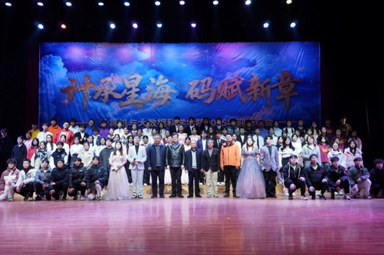 讲话结束后,文艺表演正式拉开帷幕,小品、歌唱、跳舞等多种艺术形式轮番登场,为现场观众带来了一场视听盛宴。舞蹈《半壶纱》,灵动优美的舞步展现着青春的活力;和中思域健身队的老教师们表演《吉祥中国年》,不同于年轻人的灵动跳脱,他们的健美操里藏着岁月沉淀的从容韵味,每一个步伐都稳健有力,笑容更是温暖又有感染力;歌曲《天下》,婉转悠扬的歌声传递着少年的热忱;小品《史上第一大劫案》,诙谐幽默的小品则引得全场捧腹大笑。演员们全情投入,台下观众掌声雷动、喝彩不断,台上台下汇成一片欢乐的海洋,充分展现出学院学子昂扬向上的精神风貌与团结奋进的青春底色。