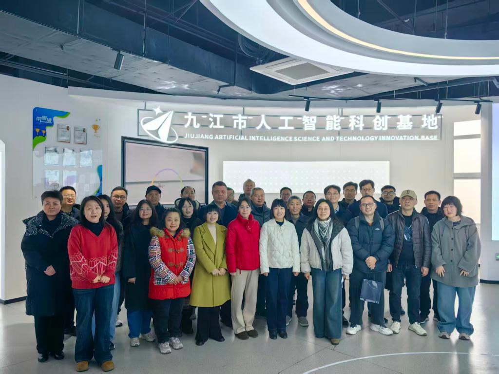 为深入研判AI时代的机遇与挑战,凝聚全院对“人工智能+”教育范式变革的共识,谋划学院在“十五五”时期的发展实施路径,1月13日上午,计算机学院首先组织教师队伍前往九江市人工智能科创基地参观学习,零距离体验科创基地的实践成果,然后集体回校参加学院的专题务虚会。院领导班子全体成员,各科室与研究所负责人、支部书记、党建组织员参加活动。会议由学院学院院长彭虎主持。