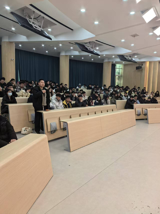 为搭建校友与在校学子沟通桥梁,传承优良学风,助力学生明晰成长路径、规划职业未来,2026年3月7日下午,beat365正版唯一官网必一2006级优秀校友金官丁重返母校,与学弟学妹们面对面开展交流分享。整场分享会氛围热烈、坦诚真挚,金官丁校友结合自身成长经历,围绕五大核心主题毫无保留地分享经验、传递感悟,为在场学子送上了一堂干货满满的成长课。