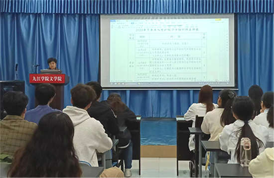 文学院余蓓老师向积极分子们介绍了本期培训班的培训形式、培训内容及考核方式。她指出,本次培训将围绕深入学习习近平新时代中国特色社会主义思想、党的百年奋斗历史、党章党规党纪和党的基本知识等内容进行培训,教育引导广大学员进一步筑牢信仰之基,提升政治觉悟,增强理论素养。并希望在座入党积极分子坚定理想信念,勇担时代重任,从根本上了解党,从感情上热爱党,从行动上追随党,真正践行“请党放心、强国有我”的庄严承诺。