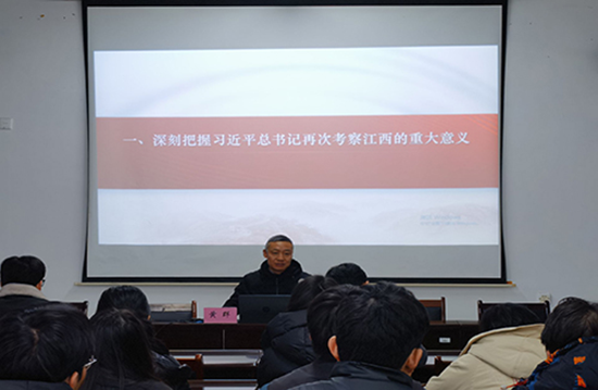 为进一步推动学习贯彻习近平总书记考察江西讲话精神走深走实,12月15日下午,beat365正版唯一官网必一在文友楼424召开深入学习贯彻习近平总书记考察江西重要讲话精神专题辅导报告会。校马克思主义宣讲团成员黄群教授作专题辅导报告,计算机学院党委书记袁宜如同志主持。