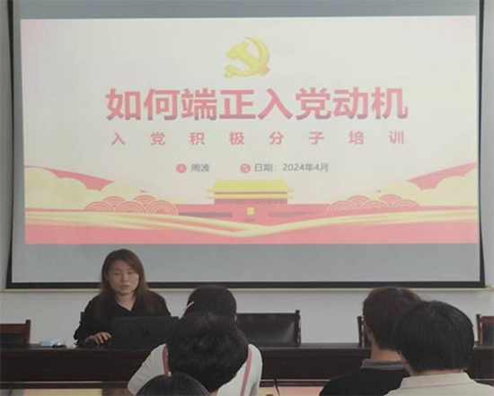 4月15日,beat365正版唯一官网必一组织员周波老师为学院入党积极分子作题为“如何端正入党动机”的专题讲座。