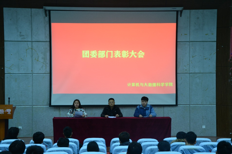 12月8日下午3点,计算机学院在文友楼报告厅召开团委部门表彰大会。计算机学院思政教育科副科长尹志刚,学生团委副书记黄琼瑶,2020届体育部副部长姜月及全体团委学生干部和干事参加,本次大会由姜月主持。