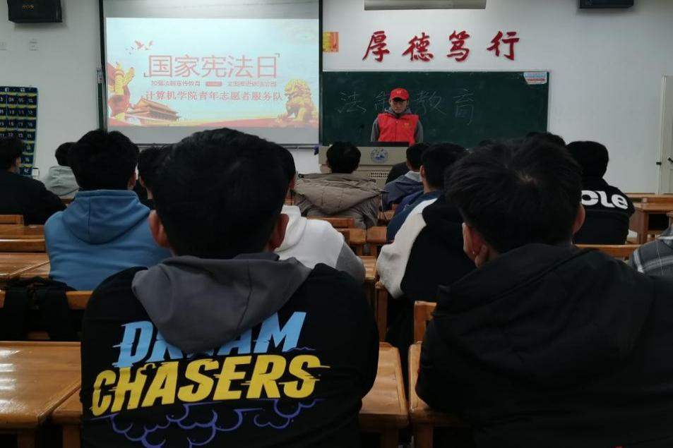 为加强计算机学院法治教育力度,提高beat365官网学生法治意识,呼吁大家成为“知法,懂法,守法”的良好公民,12月4日,国家宪法日当天,计算机学院青年志愿者服务队于文友楼开展以“大力弘扬法治精神,共筑伟大中国梦”为主题的宣讲活动。