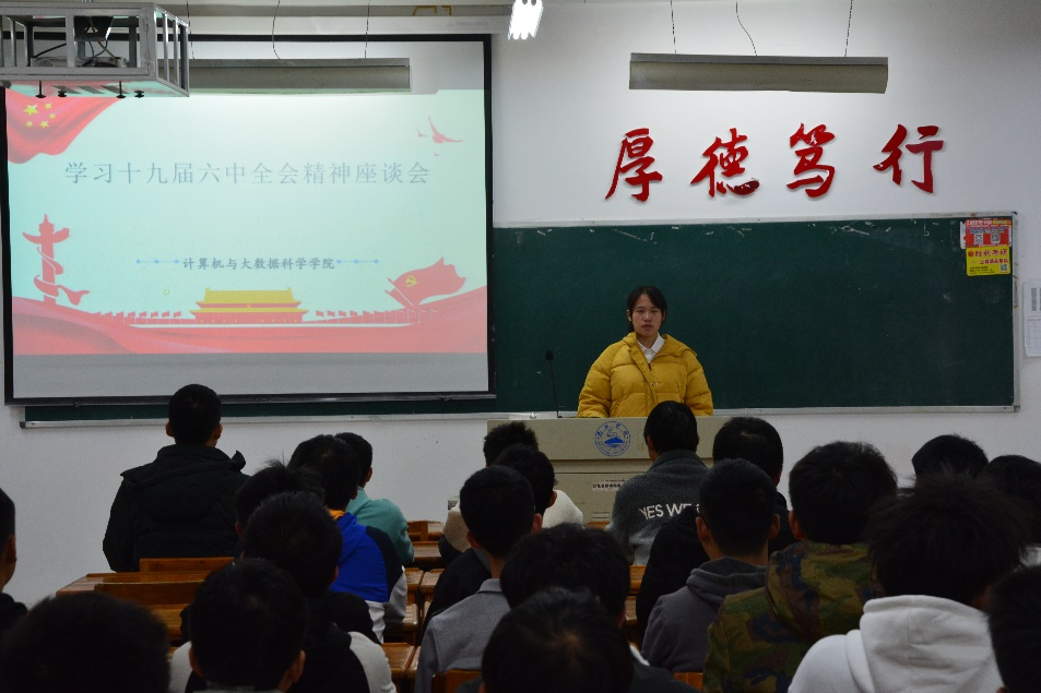 为深入学习贯彻党的十九届六中全会精神,11月23日晚,计算机学院于文友楼515开展“学习十九届六中全会精神”读书座谈会。此次会议由计算机学院A2032班孙文芳主持,各班团支书参加。