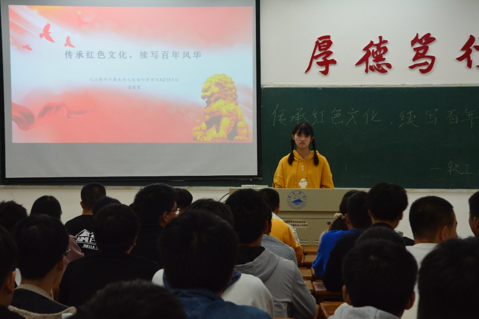 活动采用ppt与视频结合的方式,一张张具有时代性的经典图片和视频讲述,让同学们感受到了那个峥嵘岁月革命先烈前仆后继的奉献精神。从开天辟地的红船会议,到困难重重的万里长征;从象征希望的延安圣地,到繁荣昌盛的今天。各班负责人呼吁大家牢记历史,牢记使命,不忘先烈无畏牺牲的精神。生于当下,我们要将红色文化传承好,更好地续写百年风华。