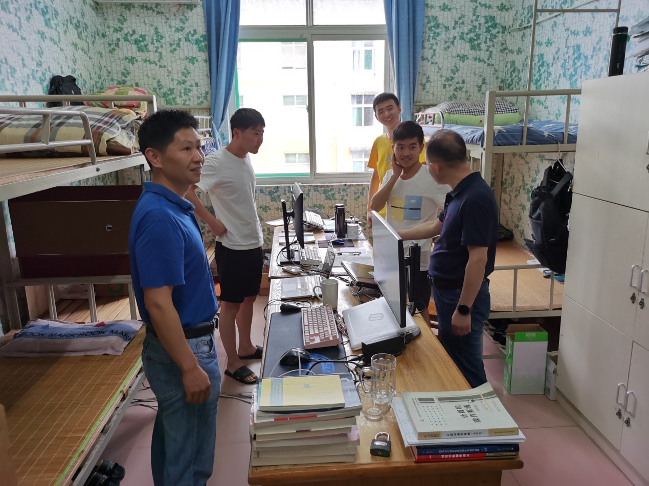 7月17日下午,计算机学院院长邓安远、党委书记袁宜如、副院长彭虎、副书记王玉伟,学生科副科长刘欣及18级辅导员等一行分别来到学院考研自修室、学生寝室看望留校备战考研的同学。