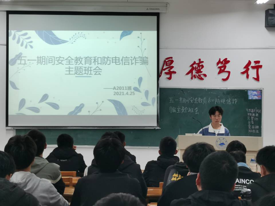 月落日升,星移斗转,就在这新的一年的流淌中,不知不觉,我们迎来了五一黄金假期。由于疫情依旧凶险,加上近期各种诈骗手段层出不穷,为了让同学们能度过一个安全愉快的假期,4月25日晚,计算机学院在文友楼各班开展“五一假期安全教育”及“防电信网络诈骗”主题班会。活动由各班班主任主持,全体学生参加。