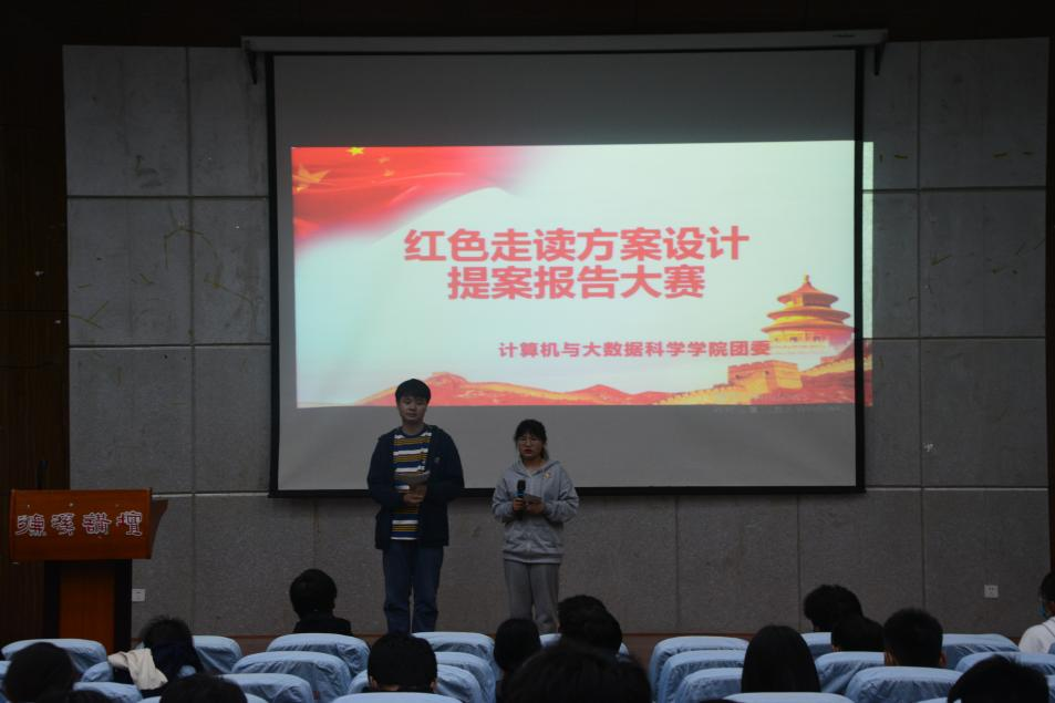 4月23日,计算机学院于文友楼报告厅组织骨干班开展“红色走读方案设计提案报告大赛”活动,活动由学生团委副书记张钰晶、黄琼瑶主持,骨干班全体成员参加。