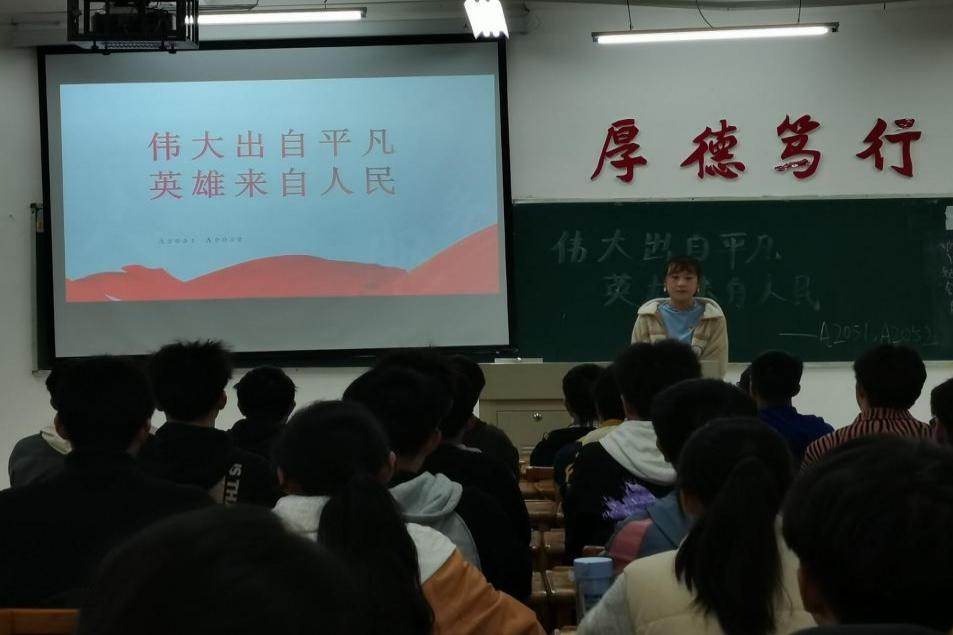 “真正万古长青的都是普通人的无名纪念碑。伟大出自平凡,英雄来自人民”。为激发学生学习英雄事迹、弘扬英雄精神,把非凡英雄精神体现在平凡生活中,4月7日晚,计算机学院组织各班开展“伟大出自平凡,英雄来自人民”主题团日活动。活动由各班团支书主持,全体大一同学参加。