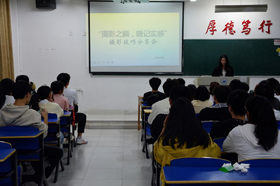 为帮助同学们更好地在生活中记录美好瞬间,提高同学们的摄影技巧,4月12日晚,计算机学院于文友楼515开展了摄影技巧分享活动,宣传部成员许艳华向骨干班全体成员分享摄影经验和技巧。