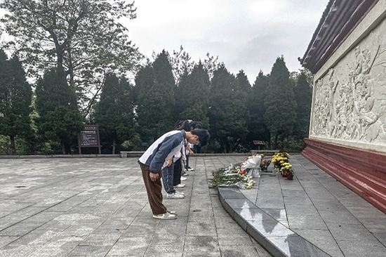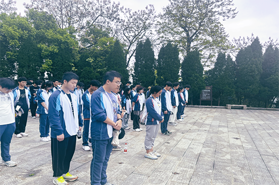 在庄严肃穆的烈士纪念碑前,全体同学肃立,三鞠躬,默哀一分钟,寄托着对革命先烈们的崇高敬意和哀思,深情缅怀革命先烈的丰功伟绩。活动中还开展了红色诗歌朗诵活动,在庄严的气氛中同学们整齐列队,神情严肃,用激昂的语言、真挚的情感,坚定了赓续英烈精神的决心,以表对革命先烈的缅怀之情和青年矢志报国之志。