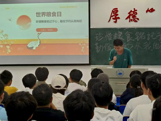 活动伊始,各班团支书通过播放纪录片和展示PPT等多种形式,引导学生们深入了解粮食生产的艰辛以及全球范围内粮食浪费的严峻现状。PPT内容详实且生动,以一粒米为例,详细描绘了它从田间地头到消费者餐桌的全过程,让学生们深刻感受到每一粒粮食背后都凝聚着农民的辛勤劳动和汗水。在讨论环节,学生们积极发言,热情分享自己在日常生活中节约粮食的小技巧和经验。他们提出了诸如按需取餐、合理规划饮食等实用建议,展示了将节约理念融入日常生活的决心和行动。