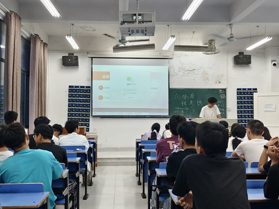 活动过程中,各班团支书借助PPT的形式展示了古今中外关于母爱的感人故事,随后播放的短视频《千里送母鸡》深深打动了在场的同学们。视频讲述了一位母亲带着女儿最爱吃的老母鸡,辗转汽车、火车、公交车等多种交通工具,跨越千里来到女儿所在的城市,只为看望刚做完手术的女儿。这个朴实而温暖的故事让许多同学热泪盈眶。期间,团支书提出互动问题:“母亲为你做过最让你感动的一件事是什么?”同学们踊跃分享,有的回忆起高考期间母亲风雨无阻的送餐身影,有的则讲述了生病时母亲彻夜不眠的守护,现场气氛温馨感人。