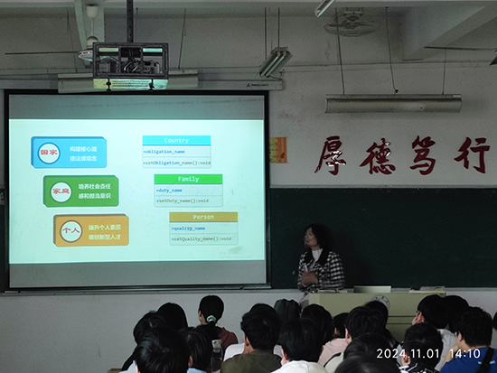 在课堂上,程建华老师充分展现了其深厚的教学功底和独特的教学风格。她通过一系列精心设计的案例,逐步引导学生深入理解面向对象语言中类的继承概念。其中,“国家类-家庭类-个人类”之间的继承关系案例尤为引人注目,不仅巧妙地揭示了继承的层次关系,还寓教于乐,培养了学生的家国情怀。